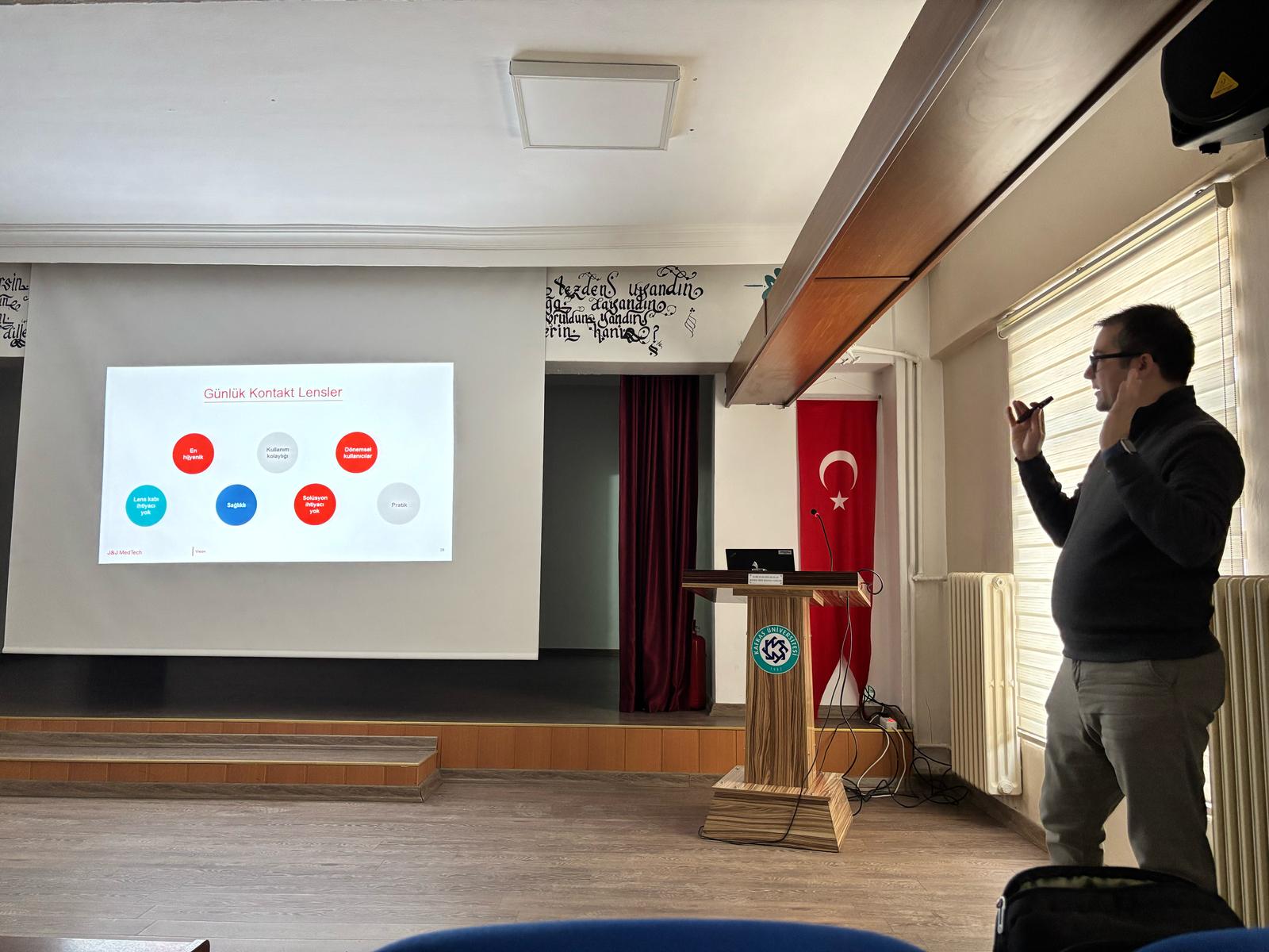 Johnson & Johnson firması yetkilileri tarafından Optisyenlik Programı öğrencilerine yönelik kontakt lens eğitimi verilmiştir. Çok sayıda öğrenci ve akademisyenin katılımı ile gerçekleştirilen eğitimin ardından öğrencilere katılım sertifikaları verilmiştir.