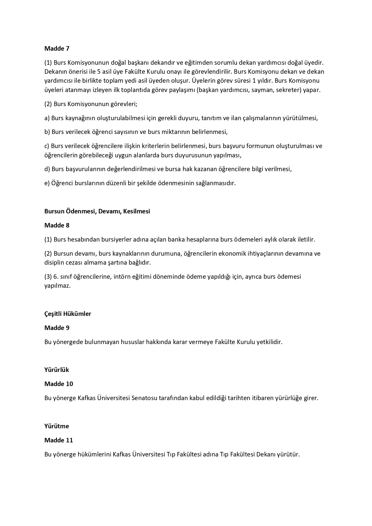 Öğrenci Bursu Yönergesi